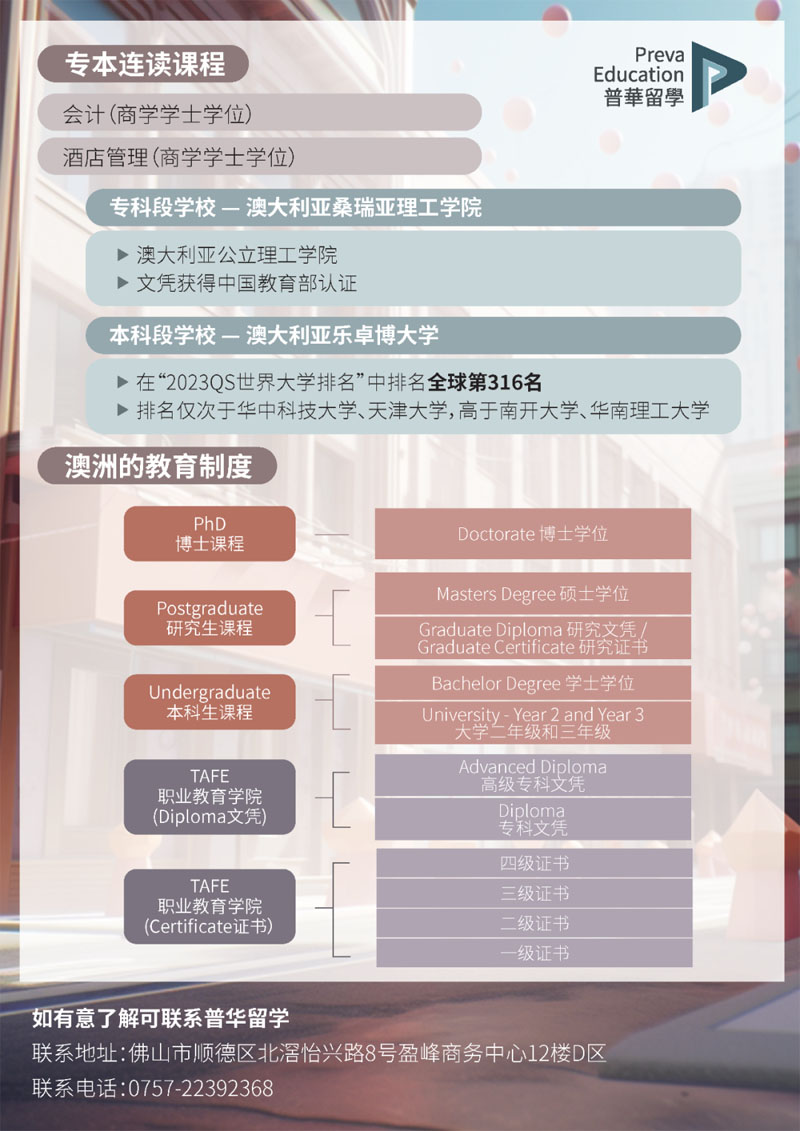 5 可以专本连读,专科毕业后直升澳洲公立大学二年级,最快3年获本科文凭。